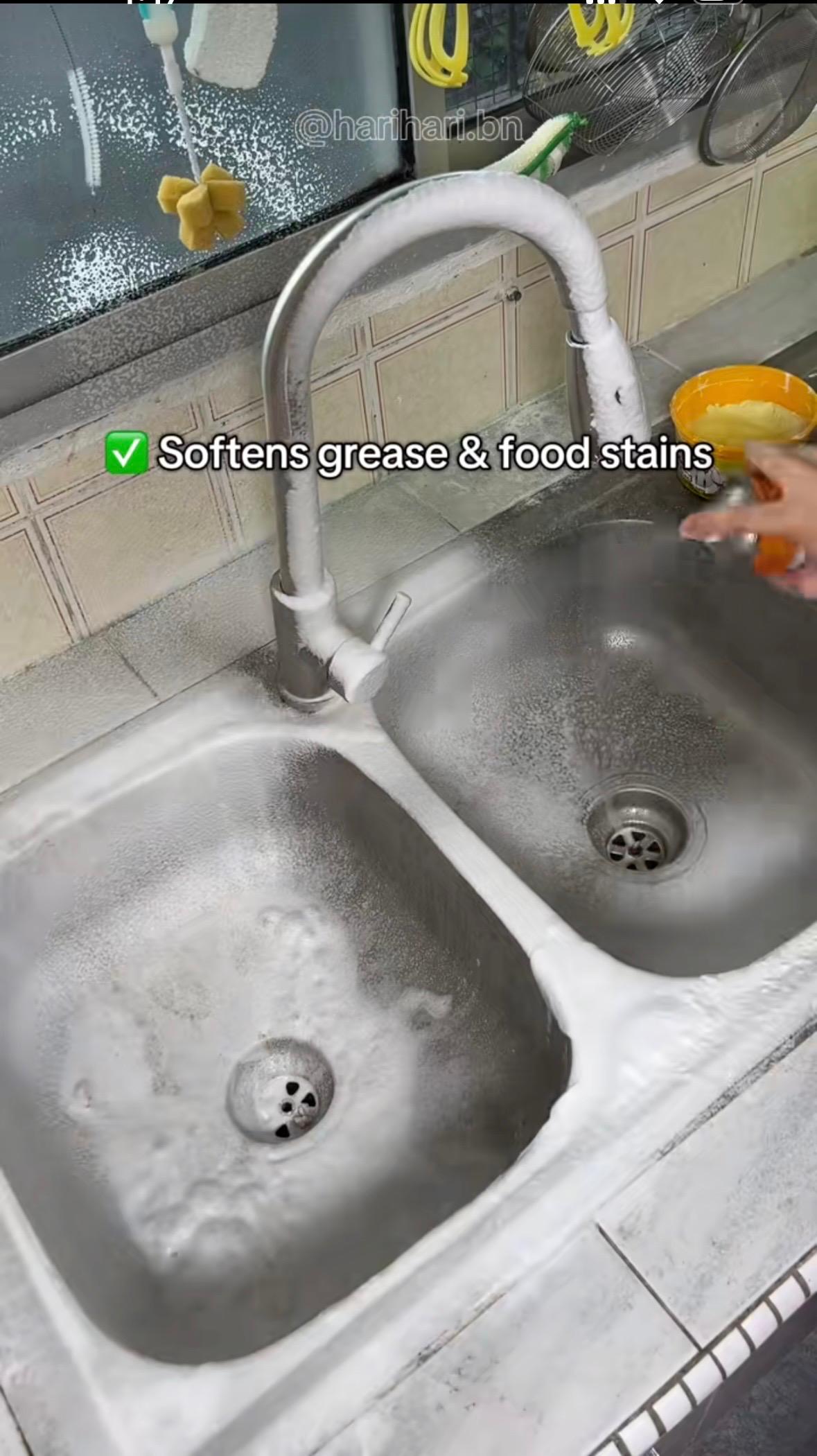You just spray and wipe simple like that. No stress, those stubborn oil stains in my kitchen were worrying me oo