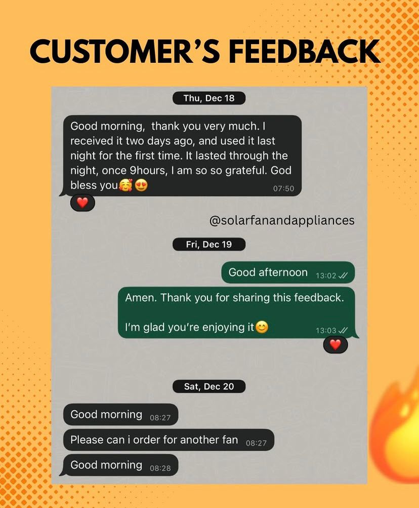 You don’t have to worry about scams or disappointment. We deliver first, you inspect the fan, and only pay when you’re satisfied. Simple, safe, and stress-free.